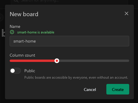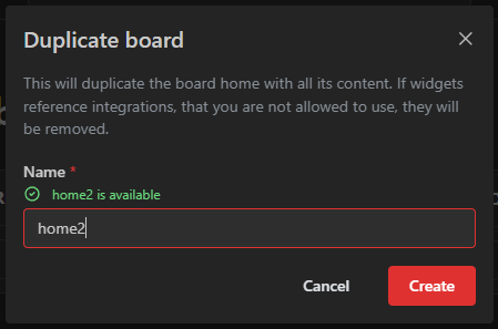 When creating a board, the availability of the board name will be checked for you.